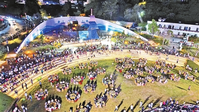 傍晚,暮色中的云帆公园灯火璀璨,渔宴热闹开席。清蒸西江鲩鱼、香煎河虾等地道河鲜裹挟着江水的清甜,食客们伴着江风与隐约的渔歌举杯,在推杯换盏间品味渔家烟火气。渔宴正酣时,国乐表演登场,悠扬旋律流淌在西江畔,动感舞姿与嘹亮歌声让现场暖意融融。当晚21时,湾边村猫山顶准时升起烟花,10分钟的绚烂光影划破夜空,五彩的焰火在西江水面投下粼粼波光,与岸边渔火相映成趣,群众纷纷举起手机定格瞬间,欢呼声伴着烟花绽放,将双节的团圆与丰收氛围推向顶点。