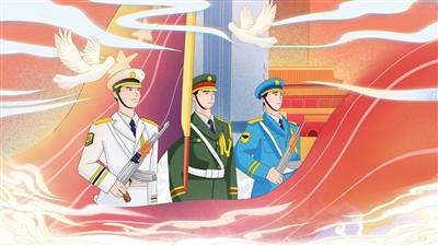 当各类兵种的队列踏着整齐划一的步伐,庄严地走过天安门的时候,我仿佛看到80年前的年轻人穿着旧军装,与妄图亡我国、灭我族的日本军队作战。他们拿着尖刀、架着枪,只待一声令下,便如洪水般涌上去与敌人决一死战。他们拼死坚守,不让敌人前进一分一毫,因为身后是敬爱的祖国,是未能尽孝的父母,是难以谋生的妻儿,更是中华民族下一代光明美好的未来。他们不想退,也不能退,如今,烈士当年舍命保护的后代,正代表他们在新中国,迈着铿锵有力的步伐,通过血脉传承,弘扬伟大抗战精神。