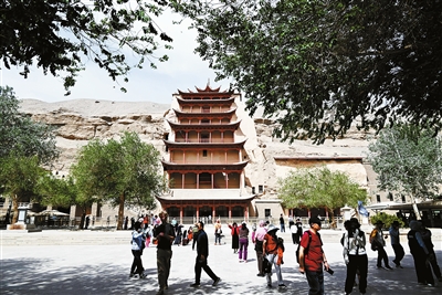 秋意渐浓,甘肃敦煌莫高窟游人如织。