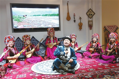 初秋清晨,新疆乌恰县,《玛纳斯》国家级非物质文化遗产代表性传承人江努日·图日干巴依在家里指导徒弟演唱。数千公里外的南京咪豆音乐节,买买提吐尔干·艾色克为年轻观众带来摇滚版《玛纳斯》。