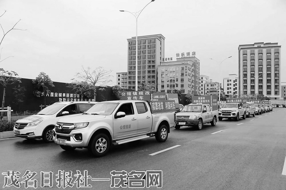 茂南区民政局副局长梁基为到场的各镇(街道)相关负责人介绍了本次宣传活动的目的和宣讲内容,一辆辆贴着“倡导文明殡葬,保护生态环境”“革除丧葬陋俗,提倡文明节俭办丧事”等宣传标语的宣传车整齐排列,缓缓从站前南路驶出,沿途循环播放殡葬改革广播,向广大群众进一步宣传殡葬改革政策法规知识。
