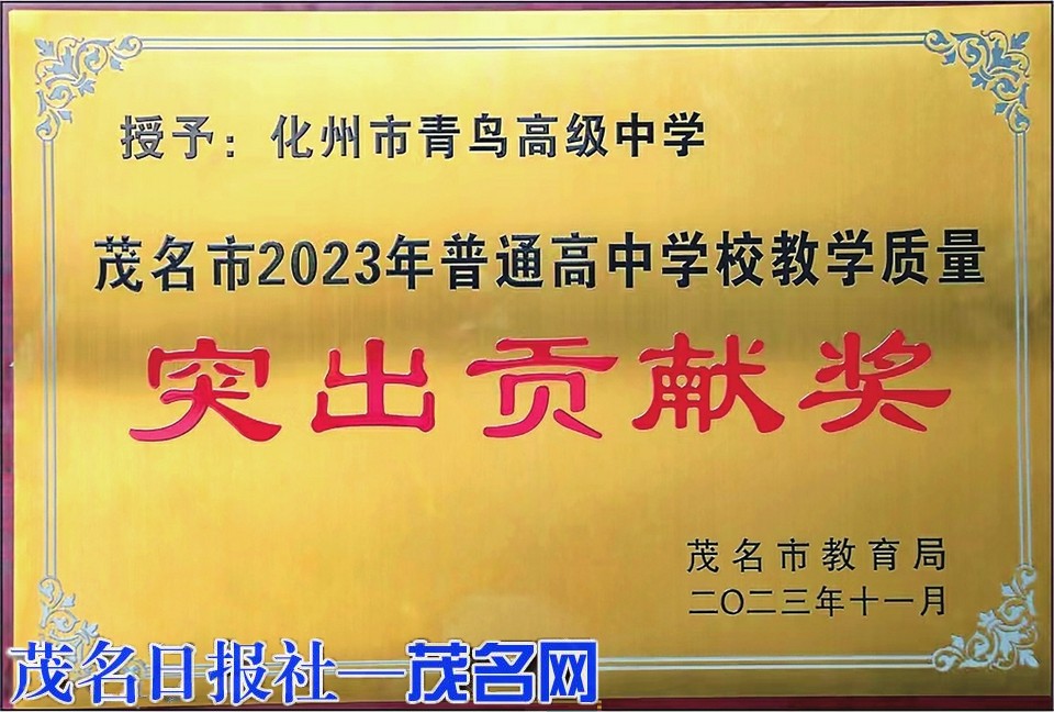 荣获茂名市2023年普通高中学校教学质量突出贡献奖。