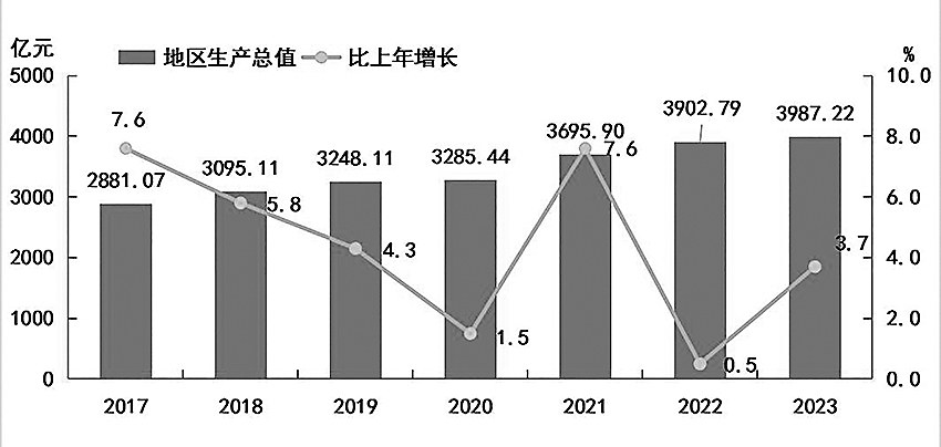 图1 2017-2023年地区生产总值及增长速度