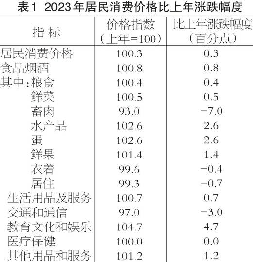 图3 2023年居民消费价格月度涨跌幅度
