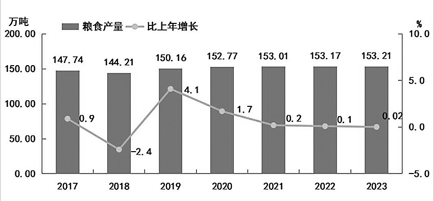 图4 2017-2023年粮食产量及增长速度
