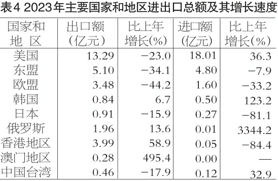 表3 2023年进出口总额及其增长速度