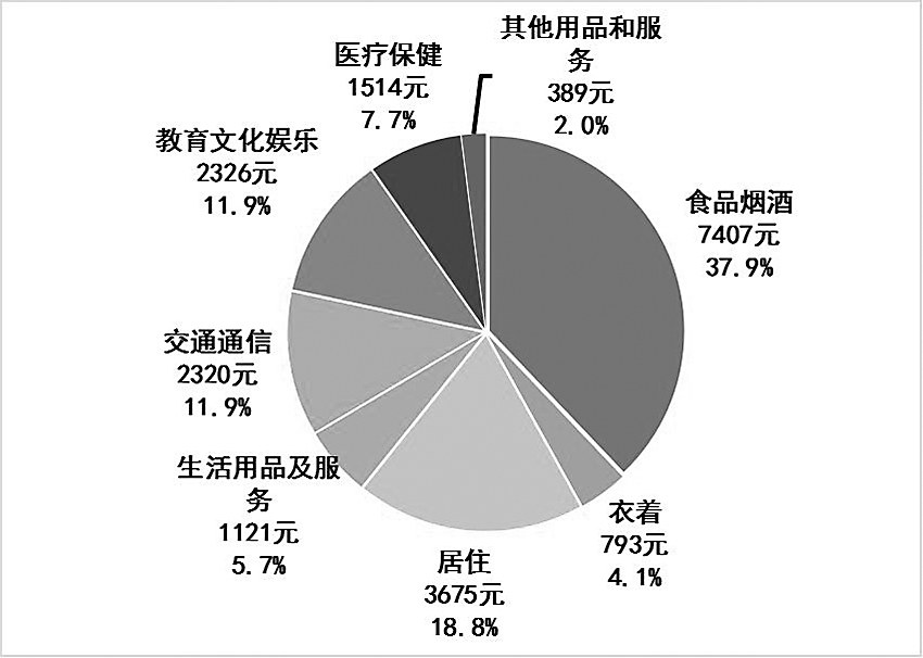 全年全市居民人均消费支出19544元,比上年增长4.3%。按常住地分,城镇居民人均消费支出21453元,同比增长3.2%;农村居民人均消费支出17928元,同比增长5.1%。全市居民恩格尔系数为37.9%,比上年降低0.4个百分点;其中城镇为36.6%,比上年降低0.3个百分点;农村为39.2%,比上年降低0.5个百分点。全市城镇居民人均住房建筑面积44.59平方米;农村居民人均住房建筑面积60.80平方米。