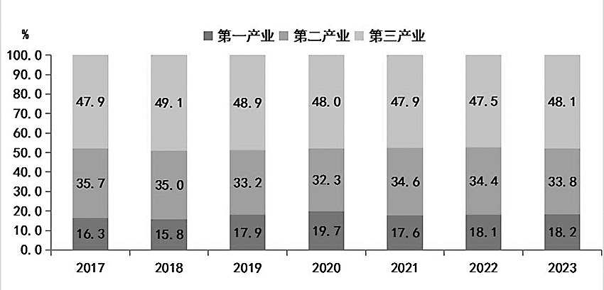 图2 2017-2023年三次产业结构