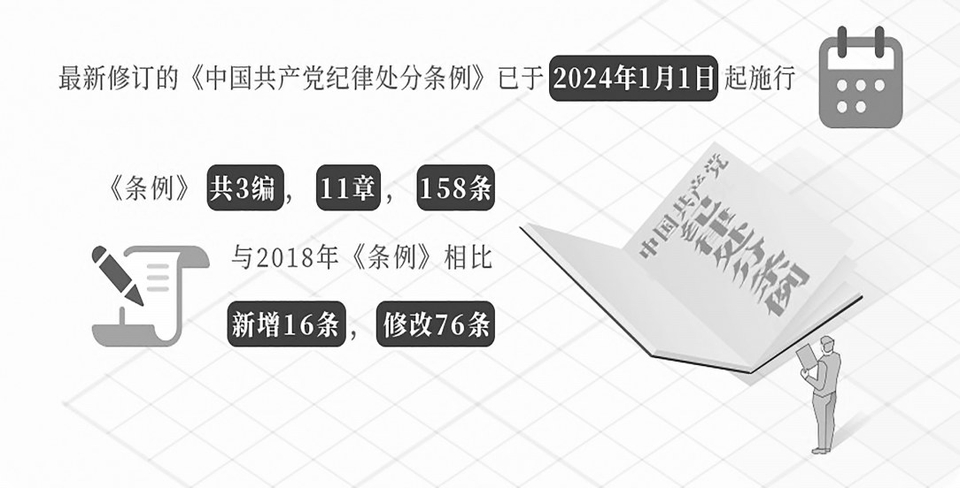 党的十八大以来,我们党先后3次修订《中国共产党纪律处分条例》,释放了从严治党越来越严、越往后执纪越严的强烈信号,为纪检监察机关严格执纪提供了基本依据。 广大党员要把学习贯彻新修订的《条例》作为重要政治任务,深入领会修订《条例》的重点内容和着力方向,强化自我约束,提高免疫能力,凝聚干事创业的精气神,在新时代新征程上作出新贡献。