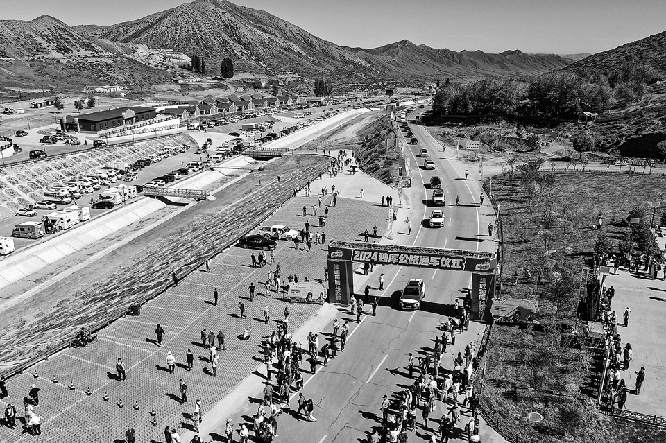 6月1日,在新疆塔城地区乌苏市独库公路驿站,车辆出发前往独库公路(无人机照片)。