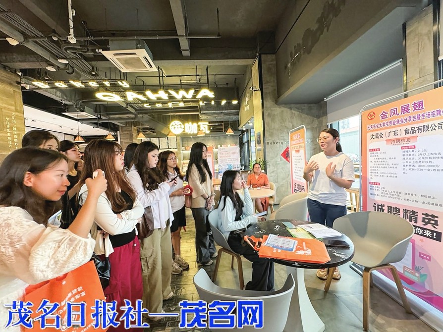 本报讯 日前,走进广东省女大学生创业实践和就业实习基地(茂名六韬珠宝创意产业有限公司),100多名女大学生满怀期待地参加“金凤展翅”茂名市女大学生创业就业分享会暨专场招聘会,她们的身影成为现场一道亮丽的风景线。