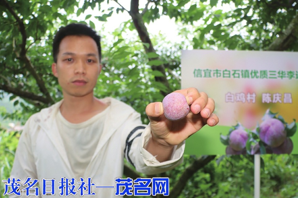 在信宜市晟世生态农业发展有限公司的果园里,色泽均匀、个头饱满的三华李挂满枝头,果农们熟练地采摘着,游客们也穿梭在果树间采摘心仪的果实。轻轻咬一口,汁水绽放,果肉紫红,酸酸甜甜的味道绽放于整个味蕾。由于种植技术和管理到位,这里的三华李长势喜人,挂果率高,是当地知名的种植大户。