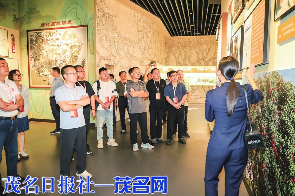 采风团的第二站来到了中国荔枝博览馆。“原来荔枝有这么多品种。”“荔枝的历史原来可以追溯到这么久远!”“第一次逛荔枝博览馆呢!”媒体大咖们纷纷表示通过参观,让自己对中国荔枝产业的发展历程及成就有了全面的了解。中国荔枝博览馆以荔枝为主题,集历史、文化、技术、艺术、教育、旅游于一体,深度挖掘和展现了荔枝产业的经济价值、社会价值、生态价值和文化价值。采风团对茂名荔枝产业的发展现状及未来规划给予了高度评价。