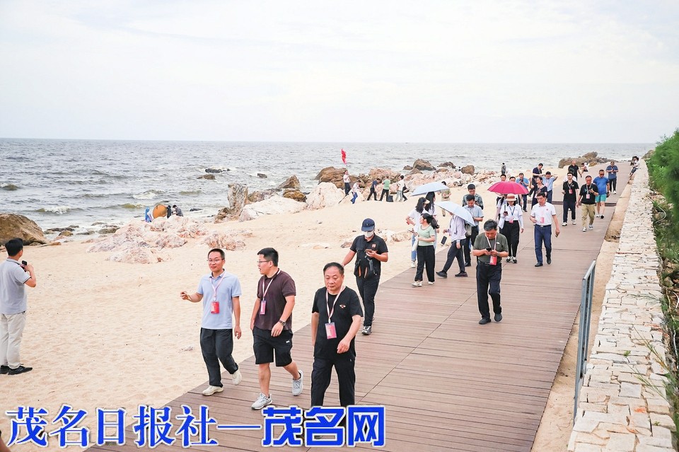 采风尾声,采风团来到南海岛·中国第一滩,漫步在细软的沙滩上,感受着海风的轻拂和海浪的拍打。远处的海面上,波光粼粼,与天空形成一幅和谐的画面。采风团的成员们或交谈着一天的所见所闻,或独自沉浸在这美景中,用手机或相机记录下这难得的瞬间。“从小我就向往大海,这次采风之行终于得以实现,看着自由辽阔的大海,心情真的舒畅很多,工作啊生活啊的烦心事好像被海浪卷走了一样,以后有机会的话会带上家人、朋友再来茂名看海!”第一次来到茂名,也是第一次看到大海的云浮融媒记者朱雅渝感叹道。