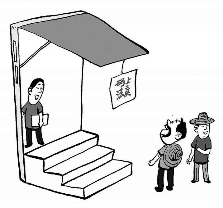 “遇到纠纷不要急,打开微信小程序,‘码上法庭’来帮忙、不花钱来不费劲……”这是陕西省延安市黄龙县人民法院法官干警们向群众宣传“码上法庭”解纷争小程序时编唱的顺口溜。为切实转变作风,让广大群众足不出户就能享受优质、高效、便捷的法律服务,近日,黄龙法院成立7个宣传小分队,深入全县乡村开展“码上法庭”宣传工作,努力将智慧司法的便捷与高效带到群众身边。(新闻来源:法治日报)