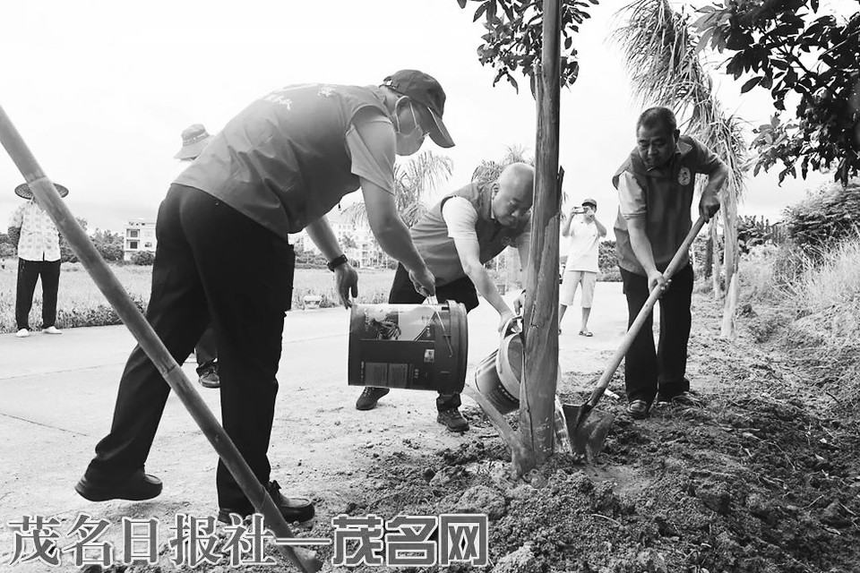 本报讯 为了进一步加强党建共建,推进“百千万工程”,深入践行“绿水青山就是金山银山”的发展理念,积极响应“绿美电白”生态建设的号召,推动绿美乡村建设,近日,电白区人民医院党委与旦场镇蕉仔村党总支部联合开展“绿美乡村党员先行”主题党日活动。电白区人民医院党委书记冼明健,党委副书记、院长李文峰带领医院领导班子及党员志愿者到蕉仔村参加植树护绿活动,以实际行动厚植生态底色,为绿美电白添彩助力。