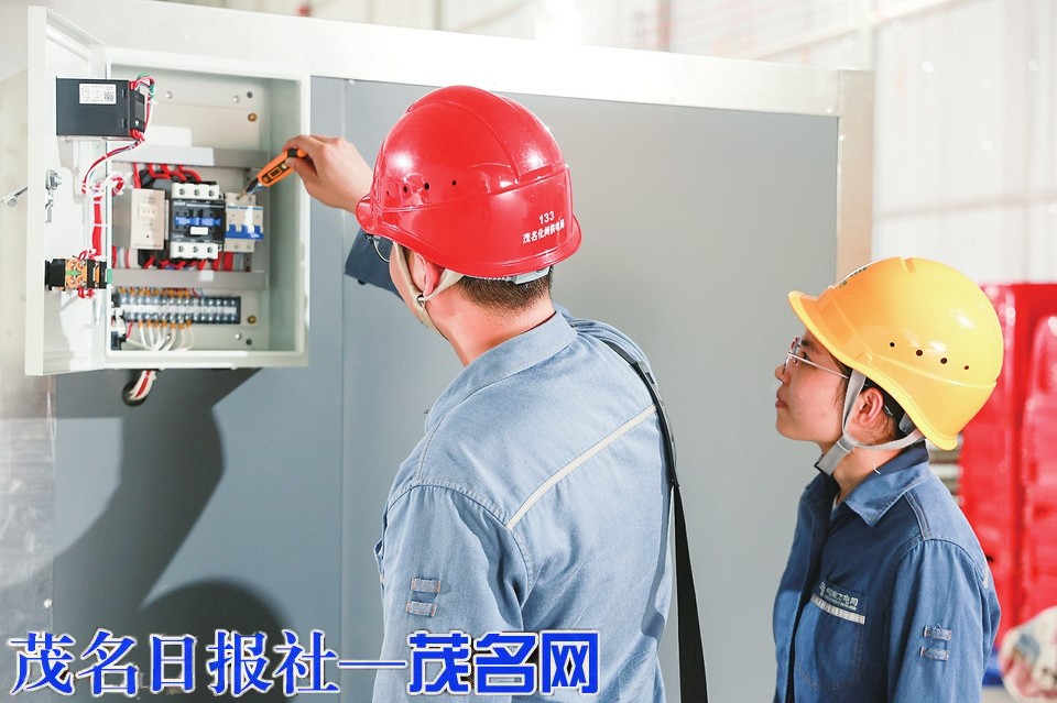 供电人员对化橘红生产厂房用电设备进行检查。