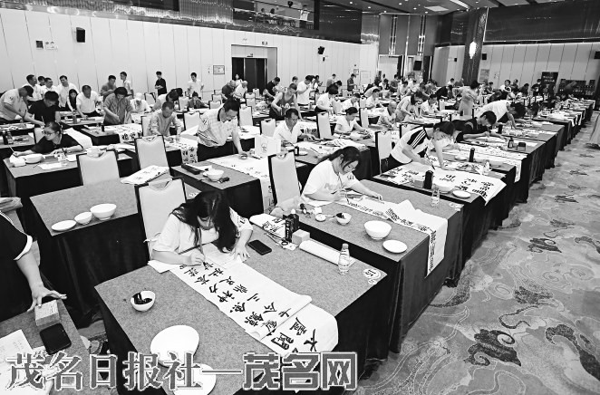 本报讯日前,由茂名市文学艺术界联合会指导,茂名日报社、茂名市书法家协会主办,茂名市盈大商贸有限公司协办,茂名日报社文化传播有限公司承办的2024茂名市第四届“汉酱杯”书法大赛决赛,在茂名钧明城四楼海龙阁酒楼举行。102位书法爱好者齐聚一堂,同台切磋,现场挥毫。经公正公开地评选,最终评出了本届书法大赛的一、二、三等奖及优秀奖。