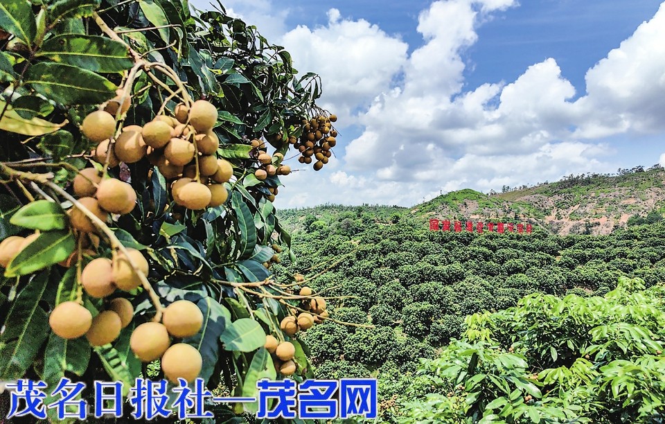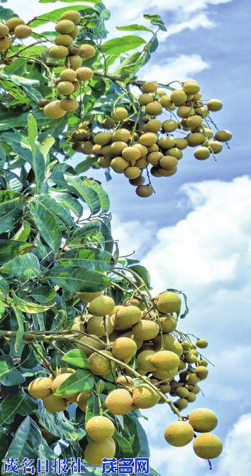 眼下,正是龙眼开始收获的季节。7月3日,记者来到高州市燊马生态农业发展有限公司的马头岭果场,放眼望去,浓密翠绿树叶下,一串串褐黄色的龙眼像黄金般挂满枝头,非常诱人!