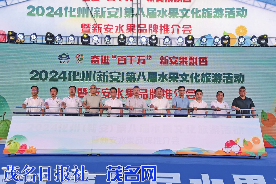 上午9时30分,2024化州(新安)第八届水果文化旅游活动暨新安水果品牌推介会开幕式正式开始,茂名市和化州市相关领导以及新安镇镇村干部、乡贤、果农及百万网友等共同见证了这一水果盛会。