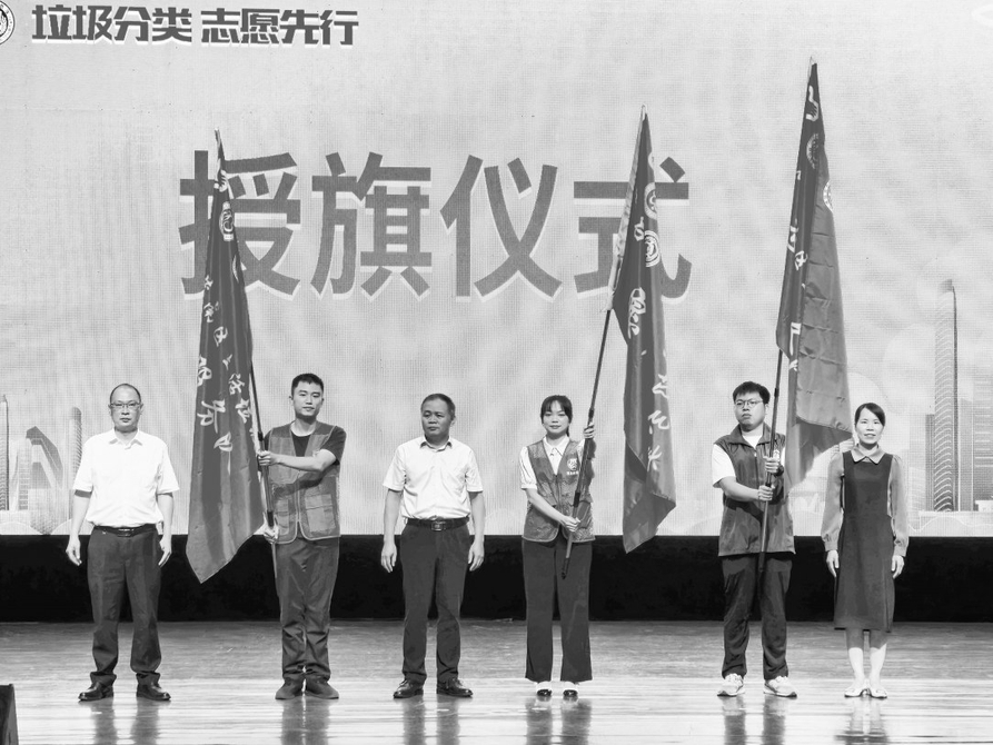 在授旗仪式上,与会领导嘉宾和志愿者一起观看了生活垃圾分类志愿服务宣传片。随后,市委社会工作部、市城管执法局、团市委的领导一同为市、区两级生活垃圾分类志愿服务队伍授队旗。现场还宣读了生活垃圾分类志愿服务倡议书。