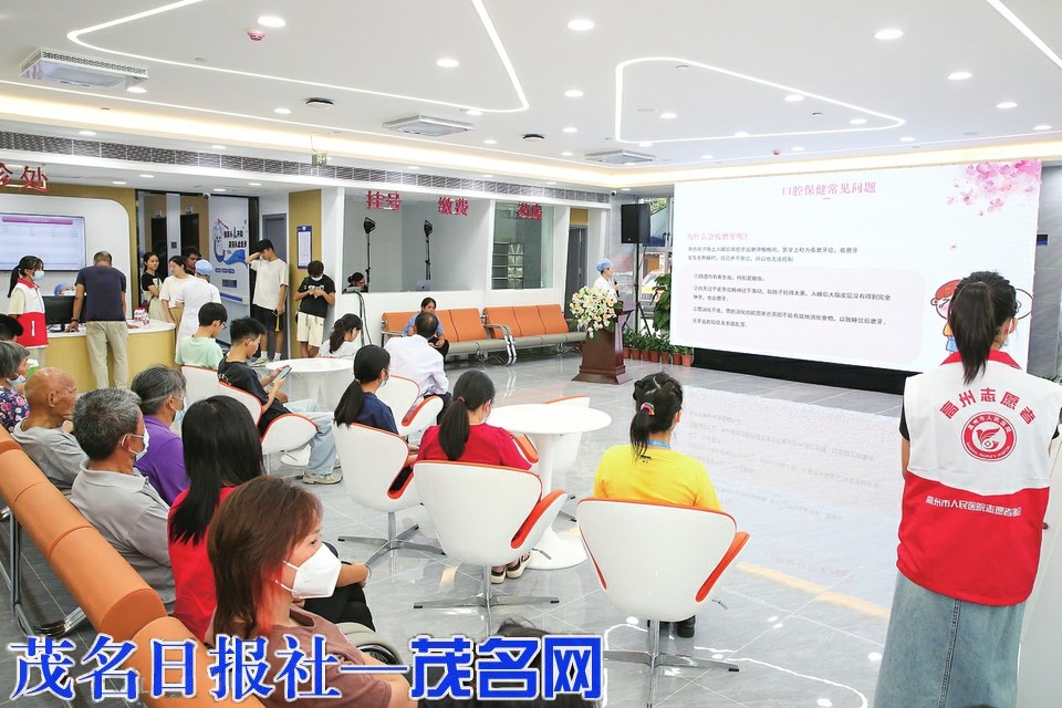 小朋友少吃零食,每3个月换一次牙刷,选用含氟牙膏,儿童需尽早到医院做恒牙的窝沟封闭……揭牌仪式后,一场特别的爱牙宣教活动在候诊大厅展开,专家以学龄前儿童牙齿保健为主题,图文并茂,深入浅出讲解,在座群众听得津津有味。