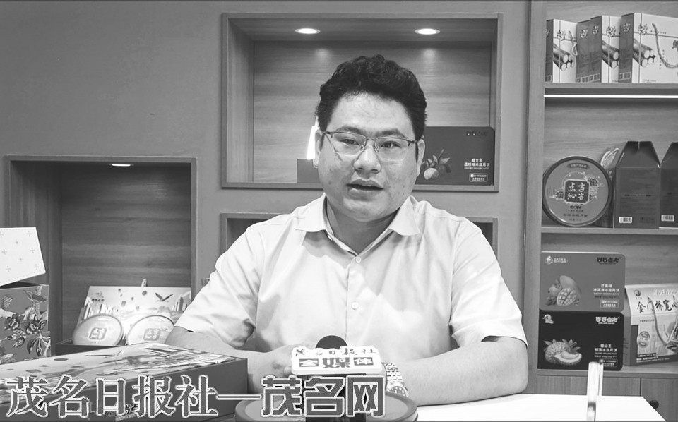 化州市金杰食品厂总经理、“当当点沁”品牌创始人郭杰龙接受记者采访。 茂名日报社全媒体记者 孙广宇 摄
