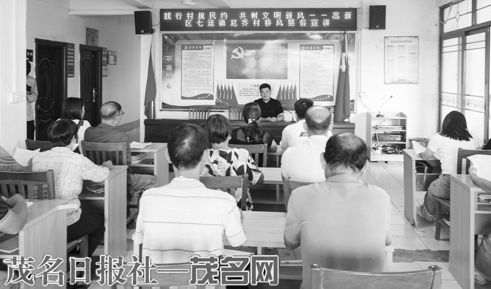 高新区七迳镇尼乔村组织村民学习村规民约。茂名日报社全媒体记者 周泽佳 摄