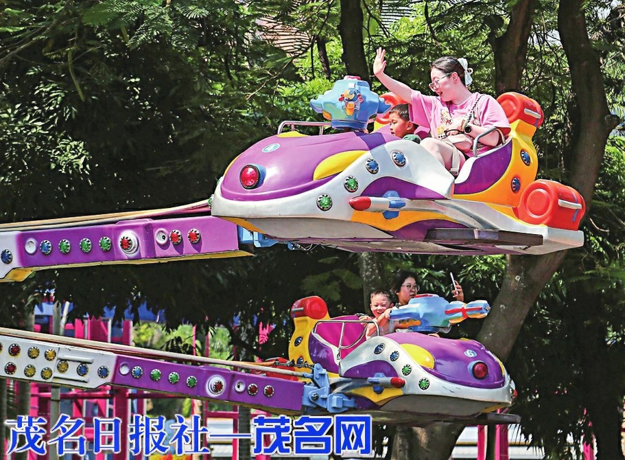 在新湖公园游乐场,游园的市民玩得十分开心。茂名日报社全媒体记者 岑稳 摄
