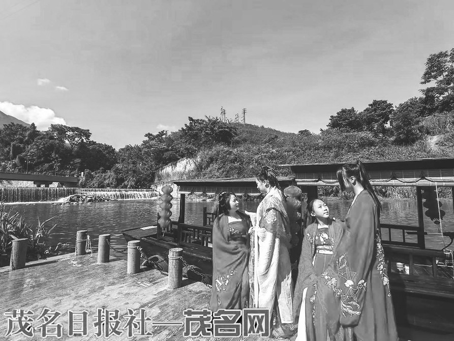 ▲游客穿汉服游玩山水双合。通讯员柯玉婵摄