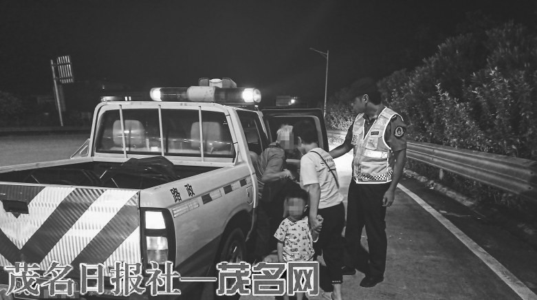 10月4日零时许,某白色小型客车打着双闪灯停在茂湛高速官渡站外广场迟迟未启动。现场工作人员吕博强上前问询,获悉车辆爆胎没法继续赶路,司机也不知所措。