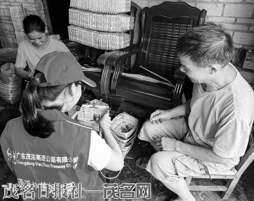 包茂高速信宜团支部前往信宜慰问“竹编”非物质文化遗产传承人,在其指导下学习竹编技术。