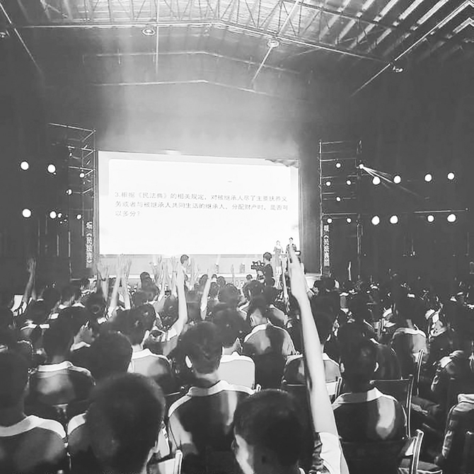 晚会的三个篇章完成,其中已有不少法律知识。接着,又进行“法律知识知多少”抢答环节。5道题围绕继承、婚姻、反诈等常见的问题展开,同学们的答案脱口而出。