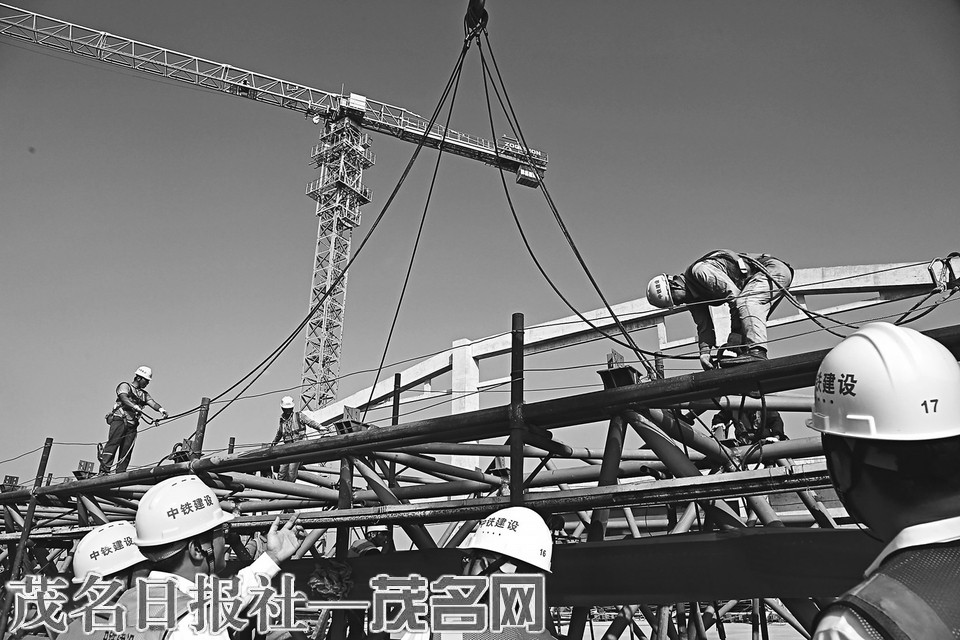 本报讯 10月21日,随着两台吊车平稳收线完毕,由广东铁投集团所属广湛铁路公司出资建设、中国铁路设计集团EPC总承包、中铁建设集团有限公司承建的茂名南站站房首榀钢结构桁架吊装完成,标志着茂名南站建设吹响了钢结构施工“冲锋号”,广湛铁路房建标段建设取得新进展。