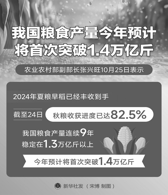 我国粮食产量今年预计将首次突破1.4万亿斤
