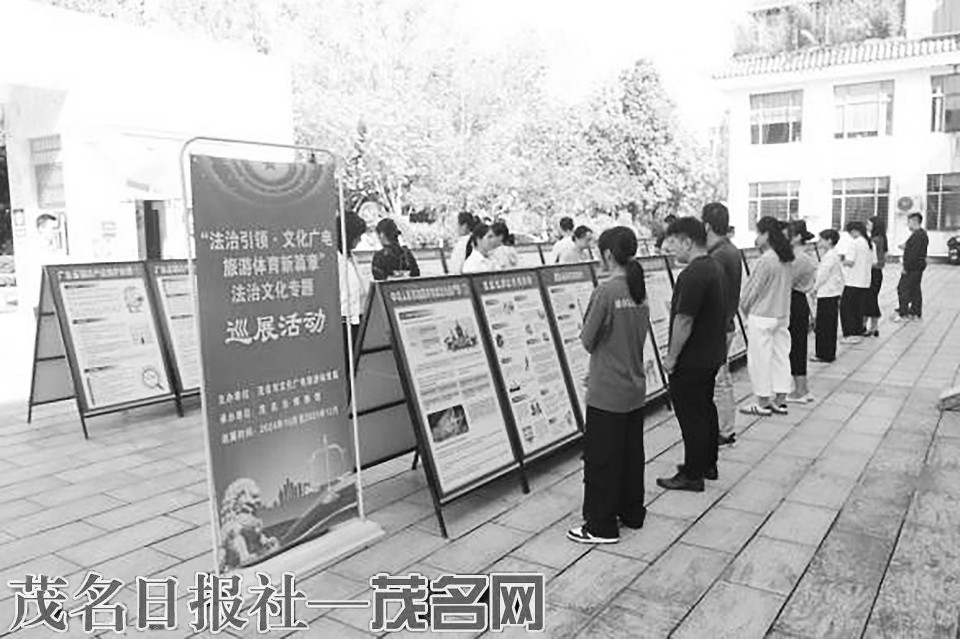 本报讯 为深入学习贯彻习近平法治思想,落实“谁执法谁普法”普法责任制和我省文化广电旅游体育系统“八五”普法规划,加强文化广电旅游体育领域法治文化建设,提升行业法治化水平,促进茂名文化广电旅游体育事业高质量发展,近日,由市文化广电旅游体育局主办、市博物馆承办的“法治引领·文化广电旅游体育新篇章”文化广电旅游体育领域法治文化巡展活动首展在市博物馆启动,拉开了本轮专项领域法治文化巡展的序幕。