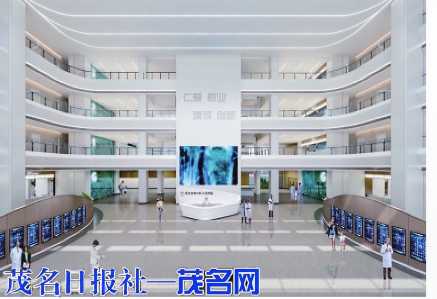 广东省人民医院粤西医院(电白区人民医院)门诊室大堂效果图。