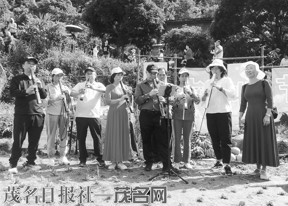 一个来自茂名的三人组合乐队在现场又弹又唱,增添了节日的快乐气氛。“河水弯又弯……”随着深情的旋律响起,一曲上世纪八十年代的电视剧主题曲《大地恩情》瞬间触动人心,引起共鸣。一曲终了,来自高州城区的游客一行10多人又来到现场,拿起电吹管,吹起《在希望的田野上》等歌曲,当中一位穿着红色裙子的女士在《九儿》的伴奏中翩翩起舞,现场气氛热烈高涨。当地干部群众和外地游客共同见证和分享了这些激动人心的时刻。