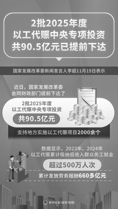 2批2025年度以工代赈中央专项投资共90.5亿元已提前下达