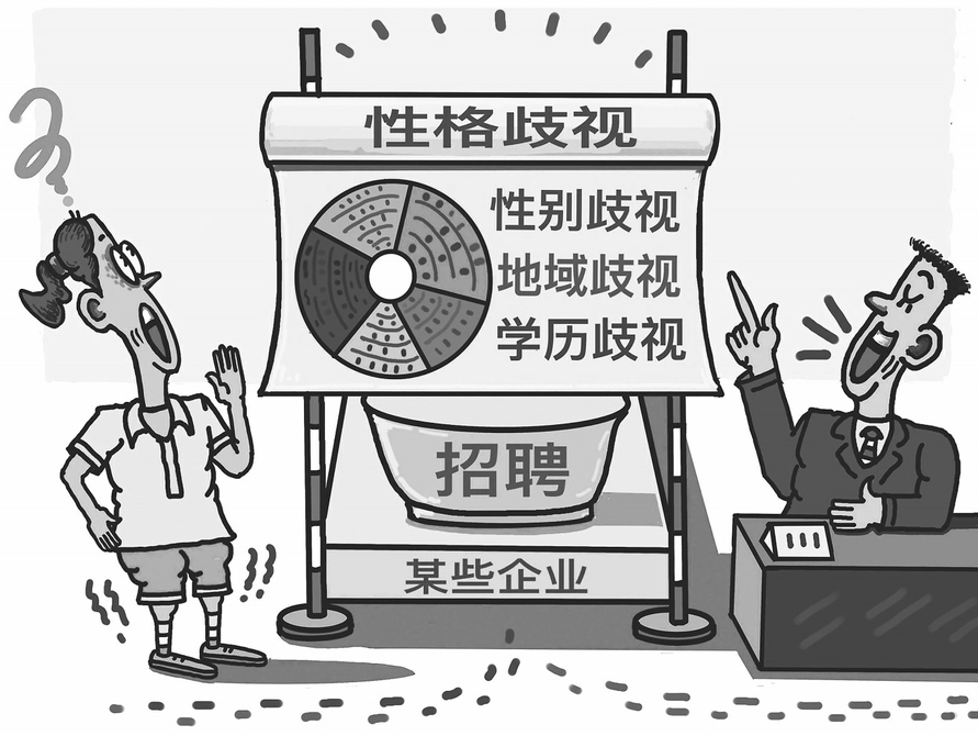 “多家招聘单位在面试时对我说想招男生,即使招女生,也是想招已婚已育的”“没想到开在北京的公司歧视北京人,我不理解为什么我的户籍是我求职中的阻碍”“完全没想到找工作会因为性格测试被刷掉”……据记者采访多名高校毕业生发现,性别歧视、地域歧视、性格歧视、第一学历歧视等各种歧视横亘在他们的就业之路上。(新闻来源:法治日报)