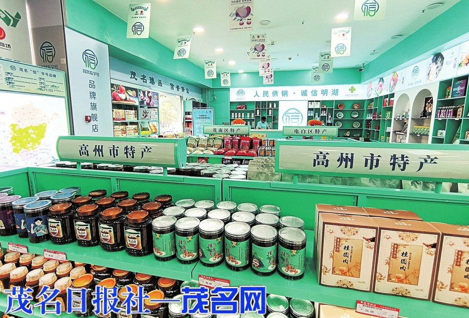 在位于市区油城七路明湖超市的茂名市首家“信”字号品牌旗舰店内可以看到,货架上陈列着荔枝、龙眼、三华李等新鲜水果,黄瓜、香菇、山楂、海鱼、茶叶、沉香等琳琅满目的特色“土特产”。这些产品均经过严格筛选和质量控制,确保产品的品质和口感,让消费者买得放心、吃得安心。