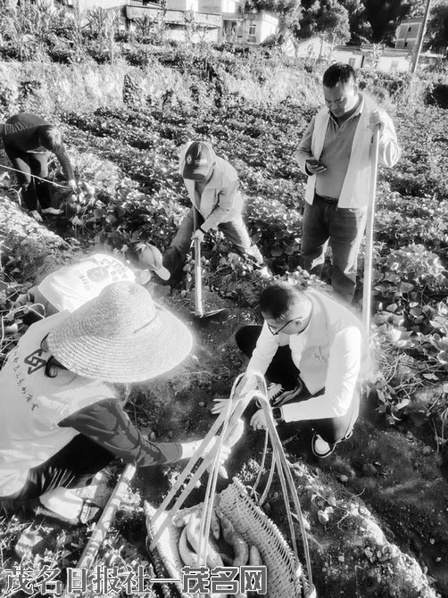 随后,中山市高州商会一行来到黄沙村,深入高山红薯种植地,与农户亲切交流,了解今年红薯收获、销售及现实需求等情况,大家在欢声笑语中,亲身体验了一次红薯开挖、挑选、包装的全过程。在黄沙村委会,大家还品尝了刚烤好的红薯,粉糯香甜的口感让大家回味无穷,纷纷表示一定要为家乡特产打“call”,并当场与合作社确定了高山红薯的认购事宜。