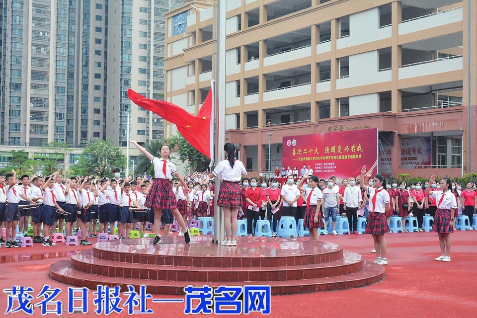 文东街小学在党建文化长廊开展爱国主义教育活动。茂名日报社全媒体记者 岑稳 摄