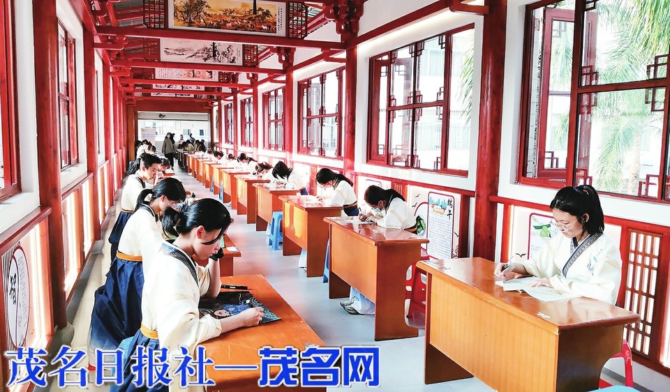 市博雅中学在国学长廊开展书法、象棋、绘画等各类国学文化活动。茂名日报社全媒体记者 岑稳 摄