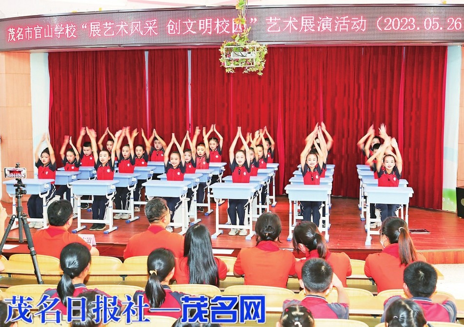 市官山学校学生在艺术展演舞台上表演《课桌舞串烧》。茂名日报社全媒体记者 岑稳 摄