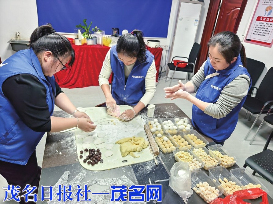 社工制作爱心汤圆。通讯员 唐珊珊 摄