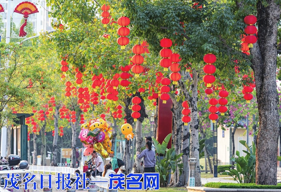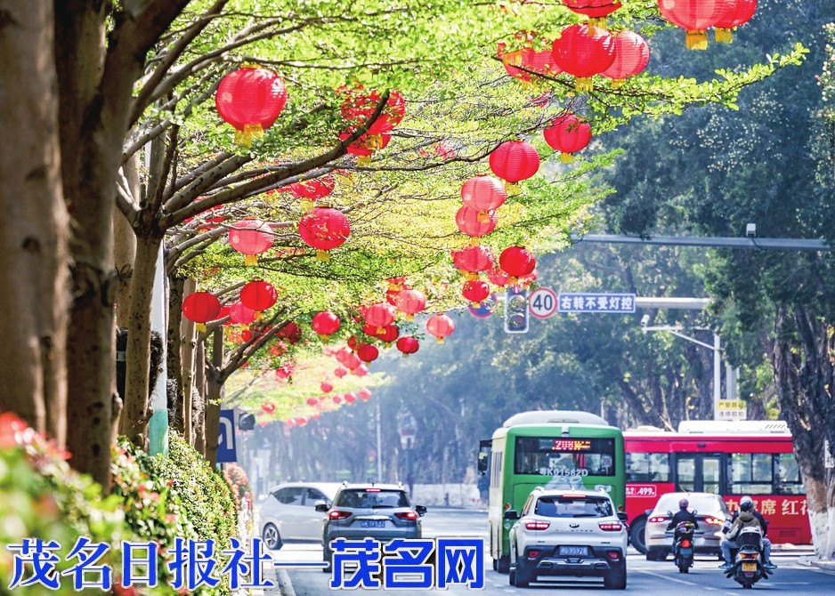 图/文 茂名日报社全媒体记者 周泽佳 新春佳节,茂名市区主干道小街巷,换上过年新装,处处洋溢着红红火火的喜庆氛围。 油城路、红旗路、光华路、文化广场、新湖公园……映入眼帘的是路灯上、绿化树上挂起串串红灯笼,路口摆置各式鲜花造型,在冬日里,增添了温暖色彩,浓烈了节日氛围,提升了城市“颜值”。