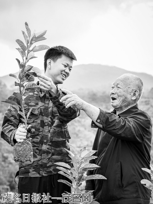 ▲廖志略向长辈请教钻研化橘红栽培技术。