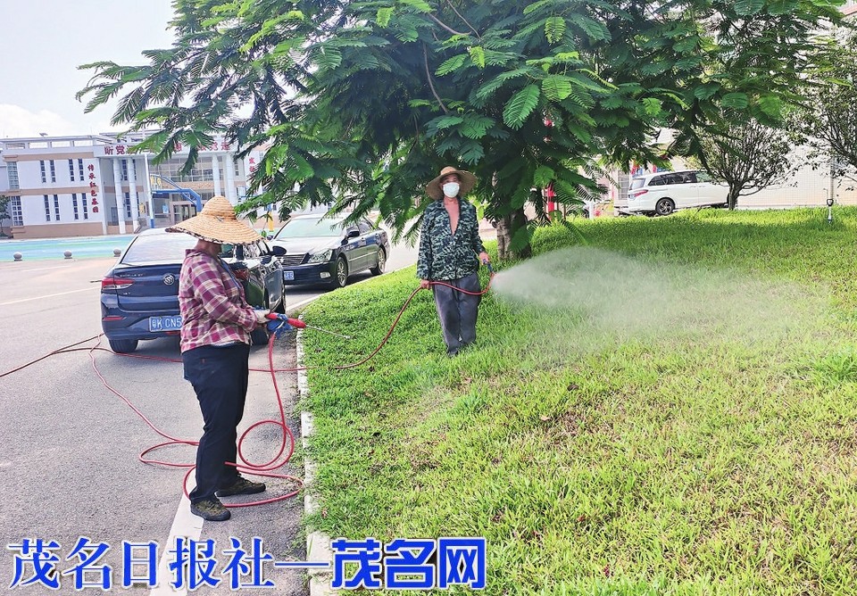团结农场工作人员对蚊虫易滋生的草丛进行消杀。茂名日报社全媒体记者 岑稳 通讯员 李桂新 摄