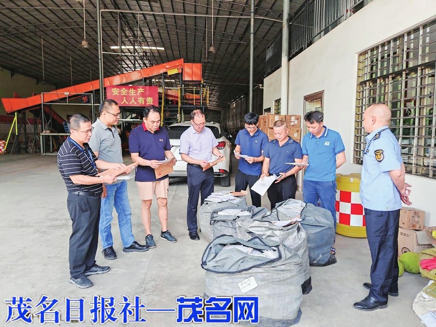 本报讯 近日,茂名市申通品牌企业成功拦截即将寄出的涉诈印刷品一批。接到报告后,市邮政管理局迅速响应,主要领导带队联合化州市交通运输局等相关部门赶赴现场进行处理(如图)。